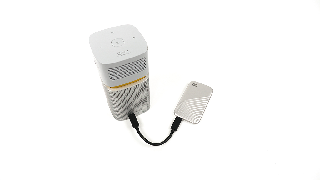 필자가 좋아하는 애니메이션을 보기 위해 프로젝터와 SSD를 연결했다. WD New My Passport NVMe SSD에는 사전에 PC와 연결해 컨텐츠들을 담아두었다.
